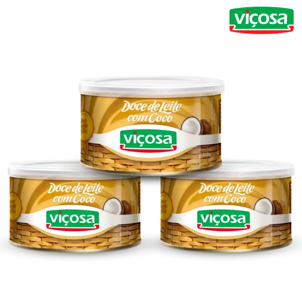 Doce De Leite Viçosa Cremoso Com Coco Pastoso 3 Unidades Lata 400g Sabor De Minas