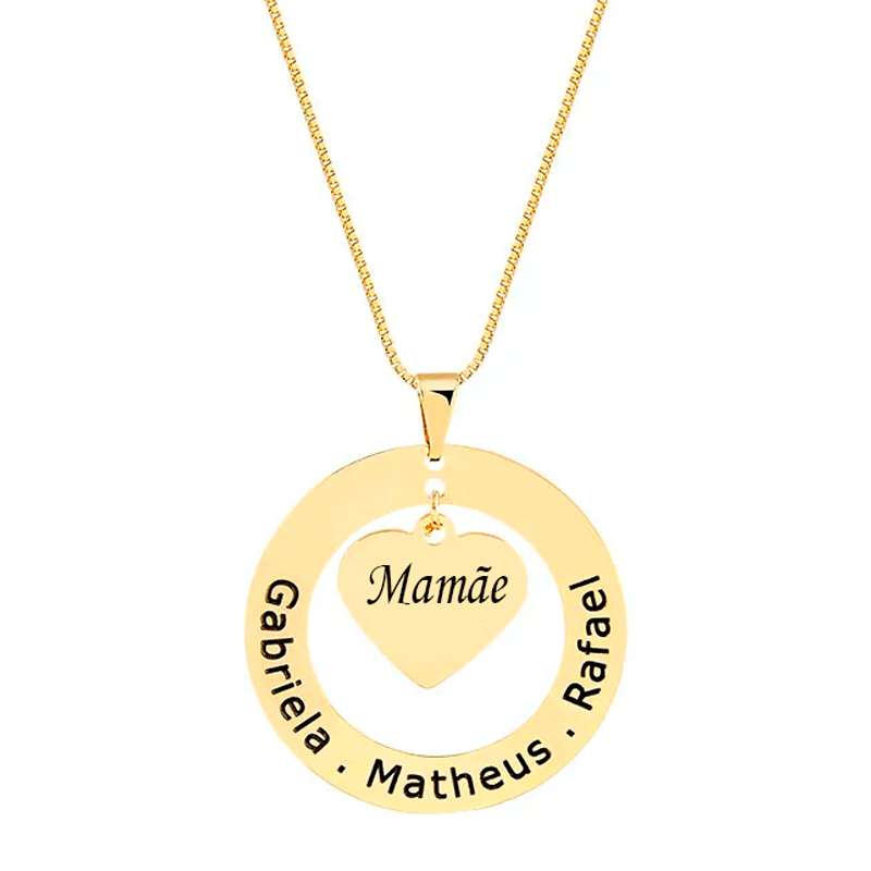 Colar Personalizado Com Pingente Coração Vovó Com Nome Banhado Em Ouro 18K
