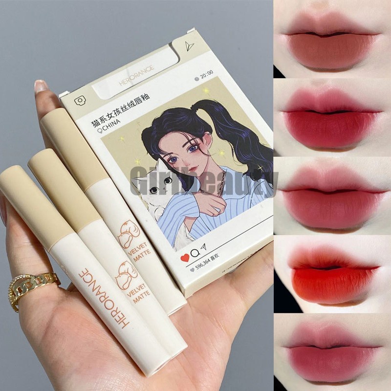 HERORANGE Batom Labial Fosco/Aveludado/Mate/Hidratante Para Mulheres/Estudantes