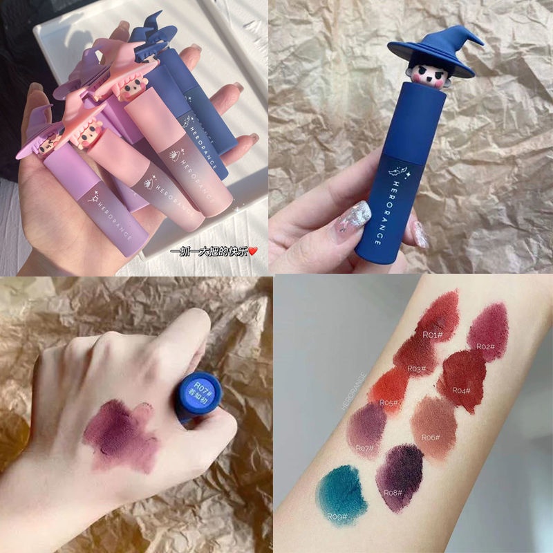 HERORANGE Batom/Brilho Labial/Mate/Aveludado Com Pequena Bruxa 9 Cores