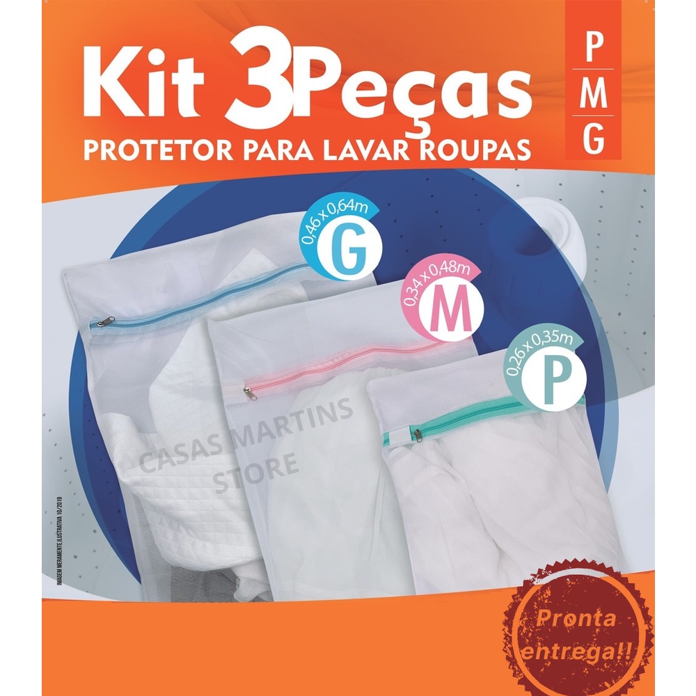 Kit com 3 Sacos para lavar roupas (P, M, G) Protetor De Lingerie Roupa Íntima Tecido Delicado Tela Papa Bolinha
