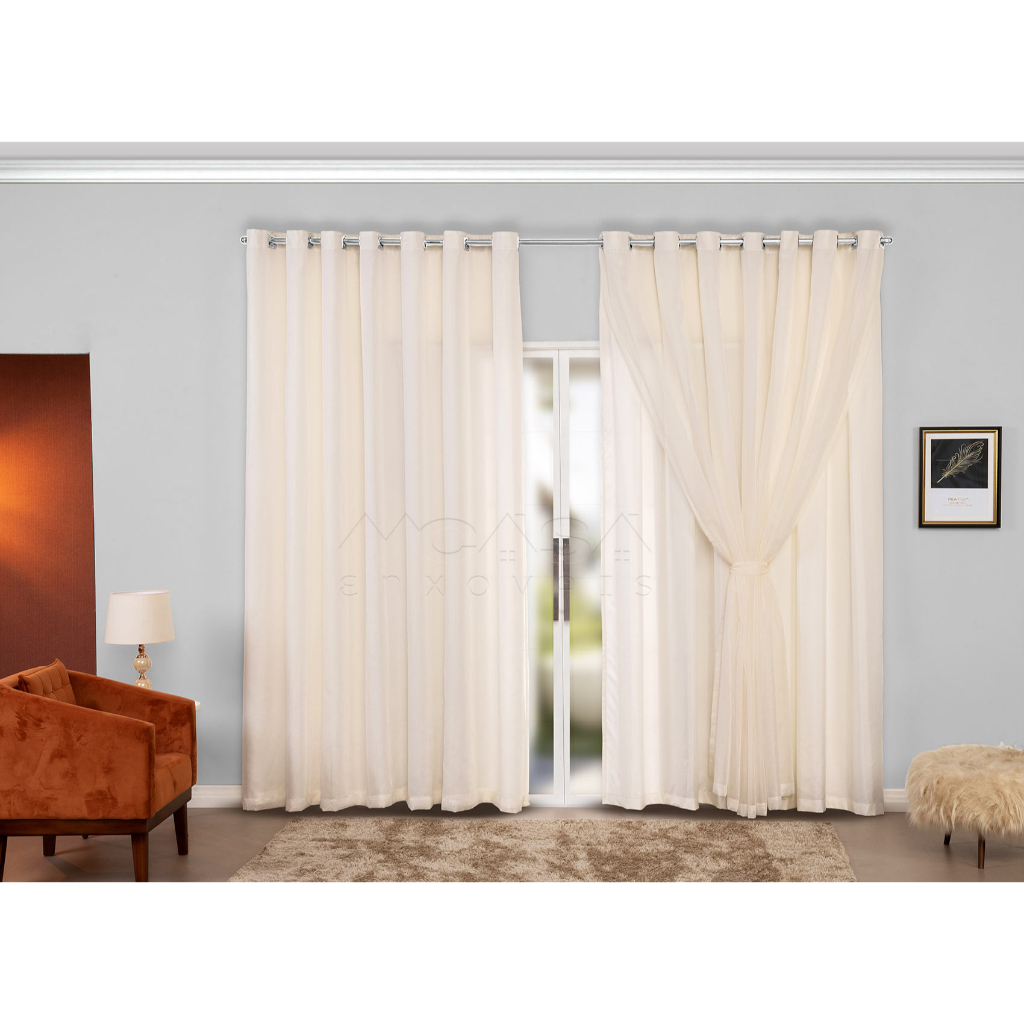 Cortina de Luxo Microfibra com voil 3,00 x 2,30 para decoração Sala