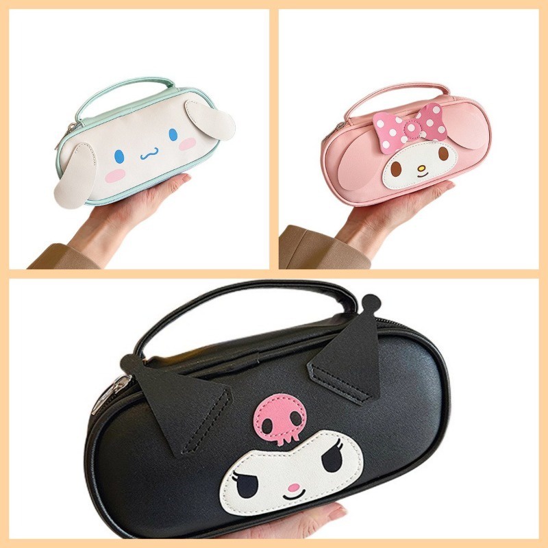Sanrio PU Saco De Lápis Canela Melodia Kuromi Cartoon De Papelaria Para Estudantes De Grande Capacidade Presentes Crianças