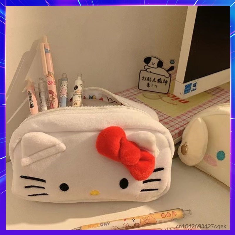Sanrio Hello Kitty Canela Saco De Lápis De Pelúcia Cartoon Papelaria Para Estudantes Estojo De Caneta Alta Capacidade