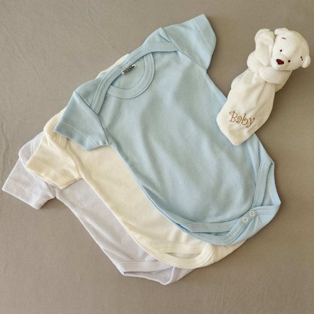 Body bebê Canelado Kit 3 peças unissex Manga Curta