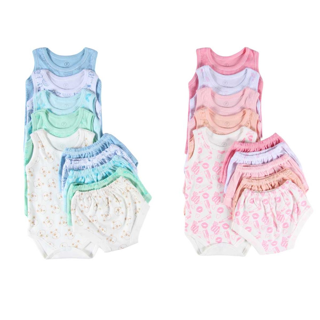 Kit 10 peças Conjunto Body regata e tapa fralda Estampado para bebê menino menina verão. Canelado