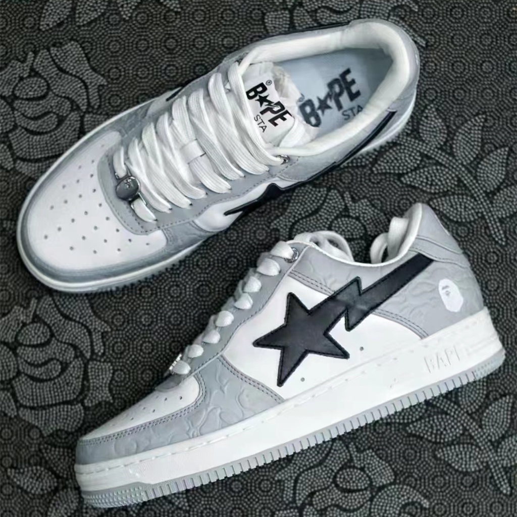 Bape Sta Five-Pointed Star Ape-Man Head Sapatos de Tênis Feminino de Ponta Baixa Tênis Casual Sapatilhas de Tênis Cinza Púrpura Ru