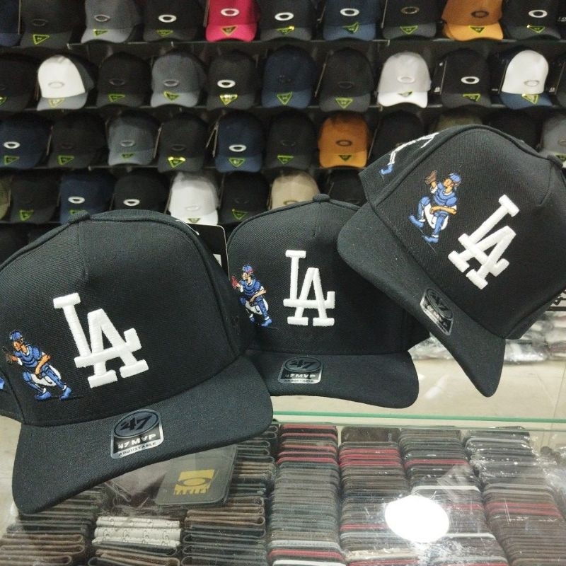 Boné Los Angeles Dodgers LA preto bordado aba curva com regulagem snapback