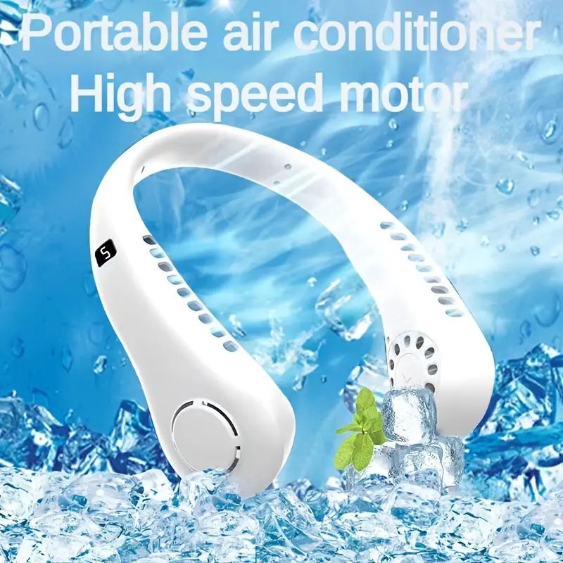 Mini ventilador de pescoço portátil, sem ventilador, recarregável, USB, sem folhas, ventiladores pendurados