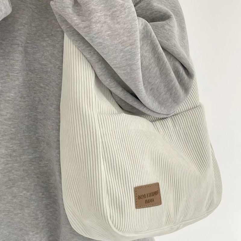 Saco De Lona Branca Marrom Novo Vintage Corduroy Um Ombro De Grande Capacidade Classe Estudantil Estilo Versátil