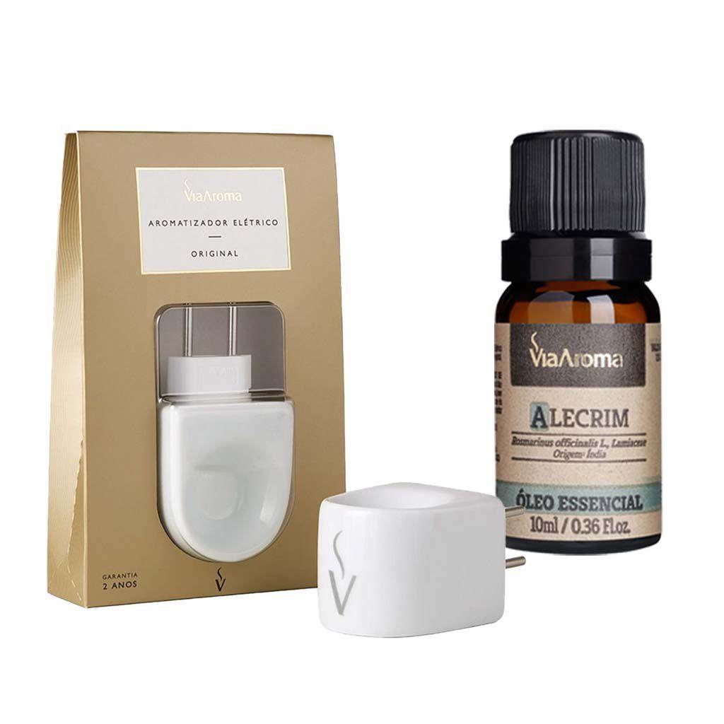 Kit Aromatizador Original de Porcelana Bivolt + Óleo Essencial Alecrim 10 ml