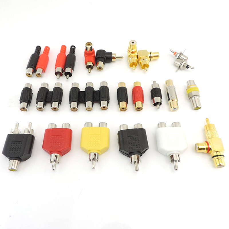 2pçs RCA Macho Fêmea A 2rca 3rca Adaptador Divisor De Conector AV Vídeo Áudio T Plug 2 3 Vias Direito Anjo a1