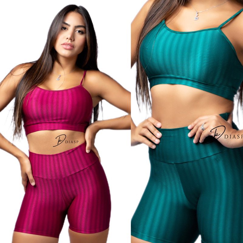 Conjunto Fitness Top + Short New Zig Suplex de Poliamida Alta Qualidade 3D Proteção UV Roupa de Academia