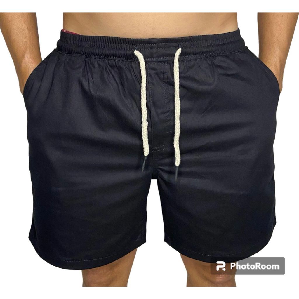 Bermuda Short Masculina de Sarja Lisa Confortável Acima do Joelho Elástico Na Cinturara Regulagem Qualidade 100% Algodão Cor Preto Azul Rosa Bege Fresquinha Verão