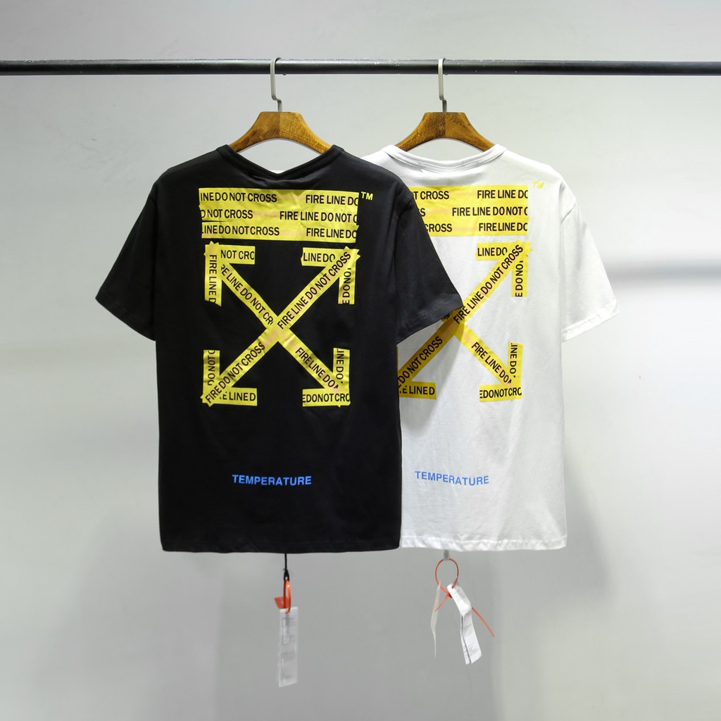 ❃ OFF WHITE Seta Camiseta Homens Mulheres Casaco O-Neck Short Sleeve Top Tees Algodão De Alta Qualidade Casual Largo Verão Preto