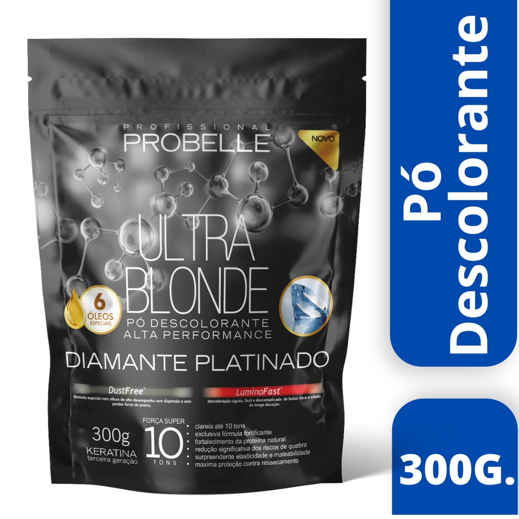 kit Pó Descolorante Platinado Ultra Blond 300g + Agua oxigenada cremosa 30 vol 900ml probelle