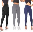 Kit 03 Leggings Fitness Suplex Lisa Academia Costura Reforçada sem Transparencia PRETA CINZA AZUL
