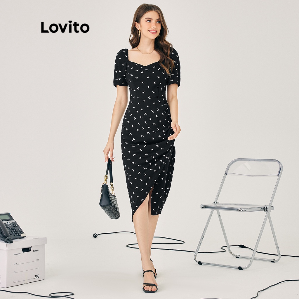 Lovito Vestido Elegante Liso Com Decote Quadrado Para Mulheres LNL47092