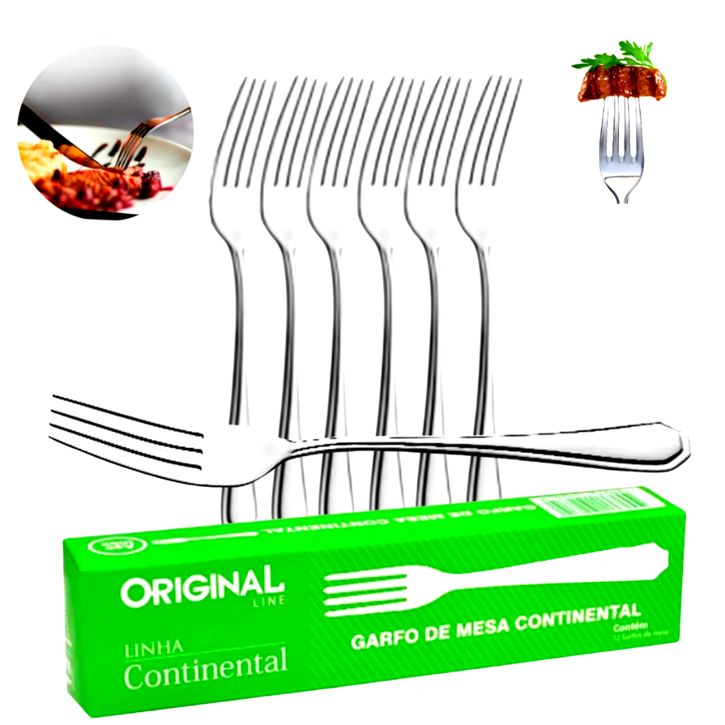 Kit 6 Garfo Mesa Aço Inox Grande Bar Restaurante Buffet Talheres pesado luxo