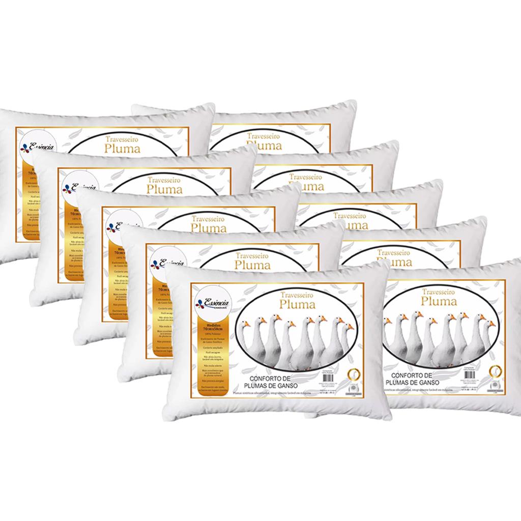 Kit 10 Travesseiro Pluma de Ganso Descanso Antiacaro 70x50cm Luxo