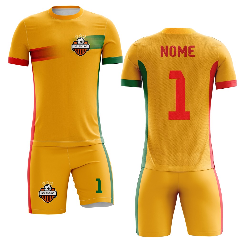 Kit Conjunto Camiseta e Calção Uniforme Futebol Dry Promoção Alta Qualidade Personalizado