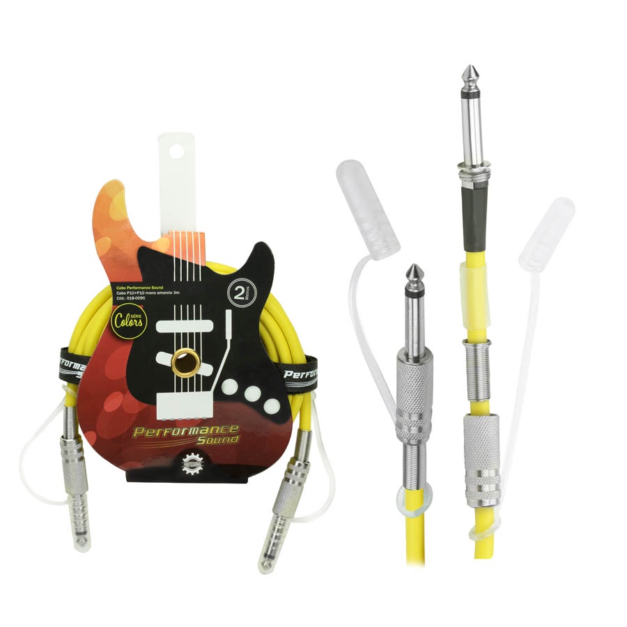Cabo Guitarra Violão Baixo P10 X P10 Mono Amarelo 2 Metros
