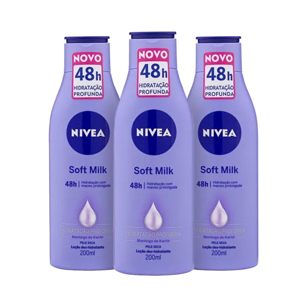 Kit Loção Hidratante Nivea Soft Milk Hidratação Profunda 200ml - 3 unidades