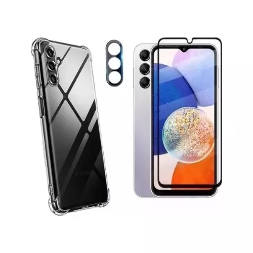KIt Pelicula Vidro 3D Samsung A14 + Capa Capinha Anti Shock + Pelicula Camera 3D
