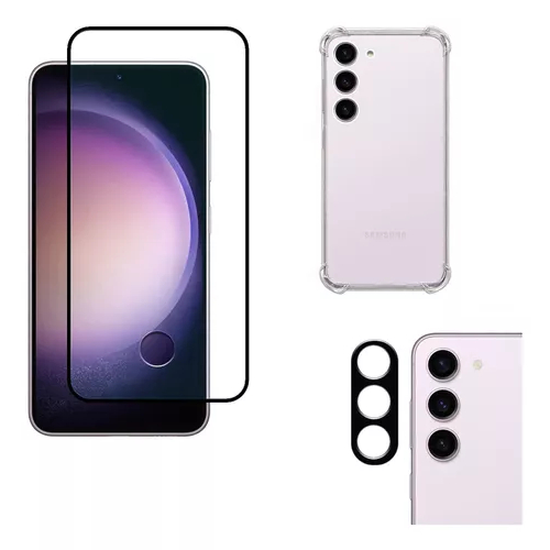 KIt Pelicula Vidro 3D Samsung S23 + Capa Capinha Anti Shock + Pelicula Camera 3D