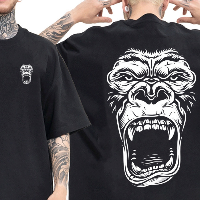 Camiseta Camisa Personalizada Gorila Selvagem Estilo Vintage Graphic Tee T-Shirt 100% Algodão Alta Qualidade