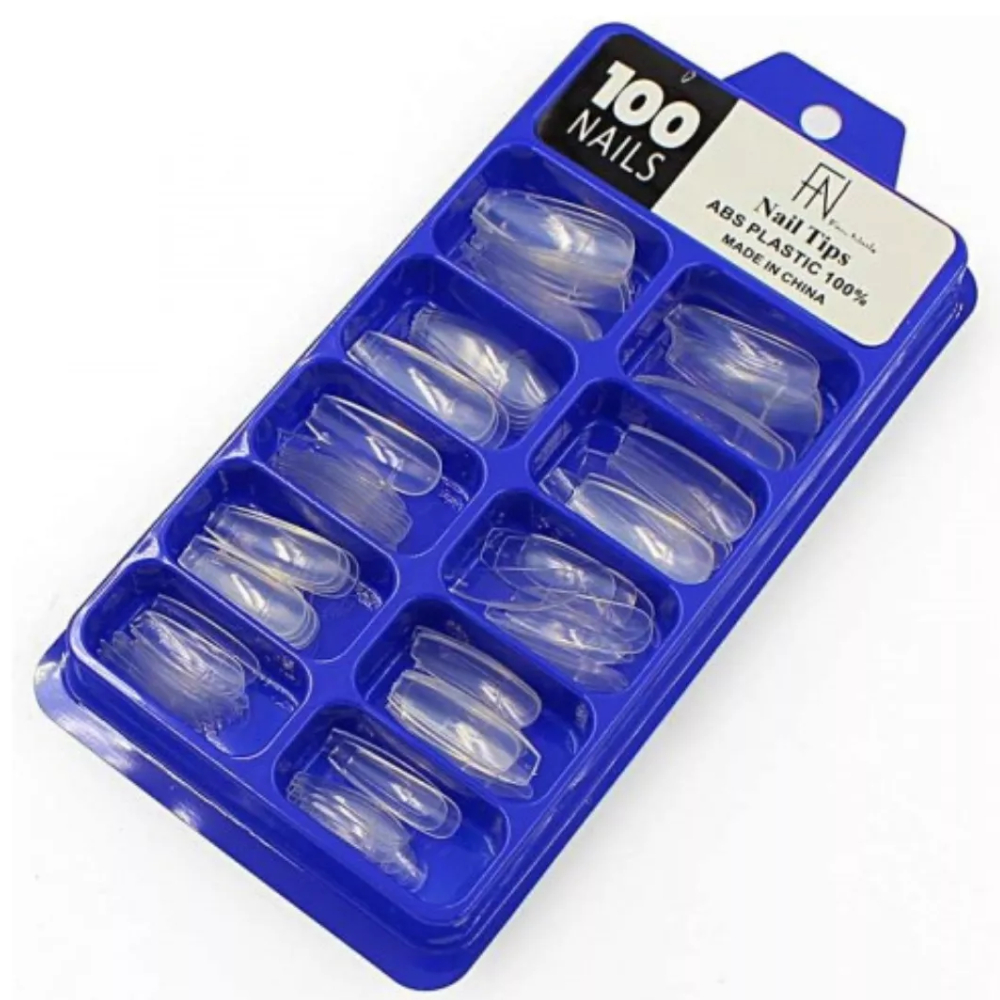 Kit 100 Unhas Tips postiça Bailarina Natural (Branca/transparente)