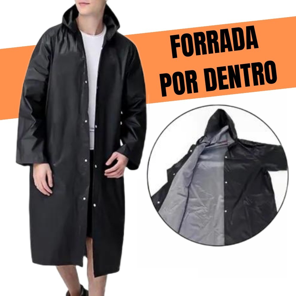 Capa De Chuva Preta Impermeável Forrada PVC Com Capuz Resistente Proteção EPI