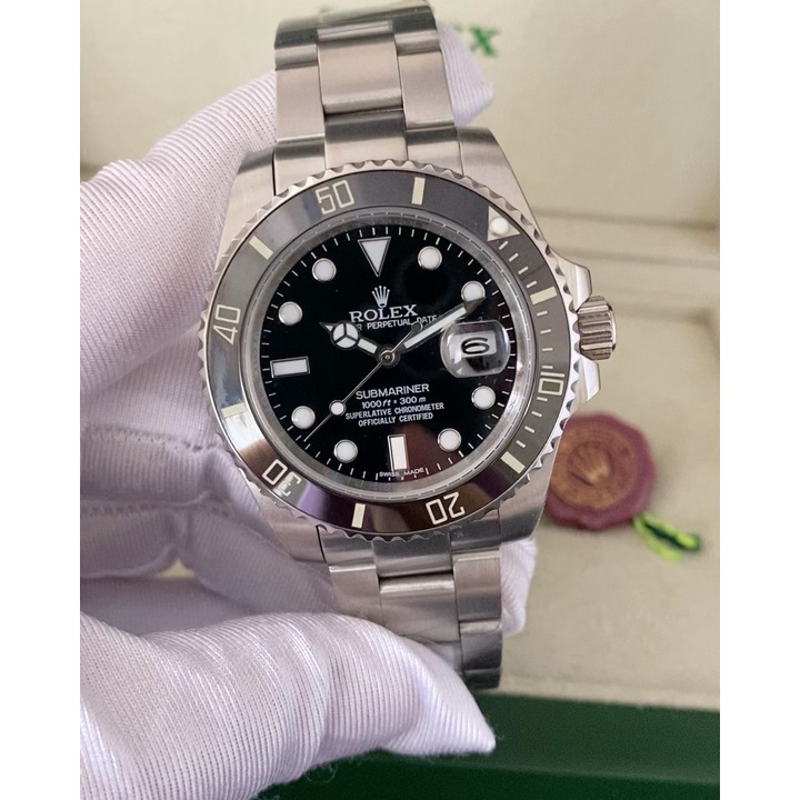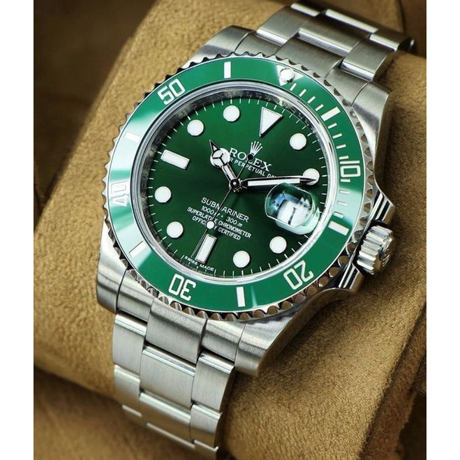 Relógio Rolex masculino submariner automático pulseria prata e fundo verde luxo