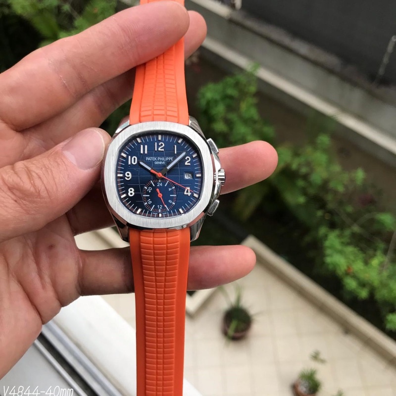 Relógio Automático Masculino Aquanaut Pulseira laranja Fundo Azul Vidro Safira