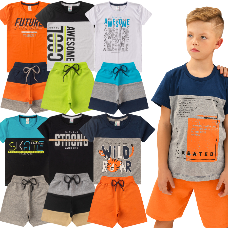 Kit Sortido 6 Peças de Roupas Infantil Masculino para Menino 3 Camisetas 3 Bermudas Kit com 3 Conjuntos Infantil Verão para Menino dias quentes
