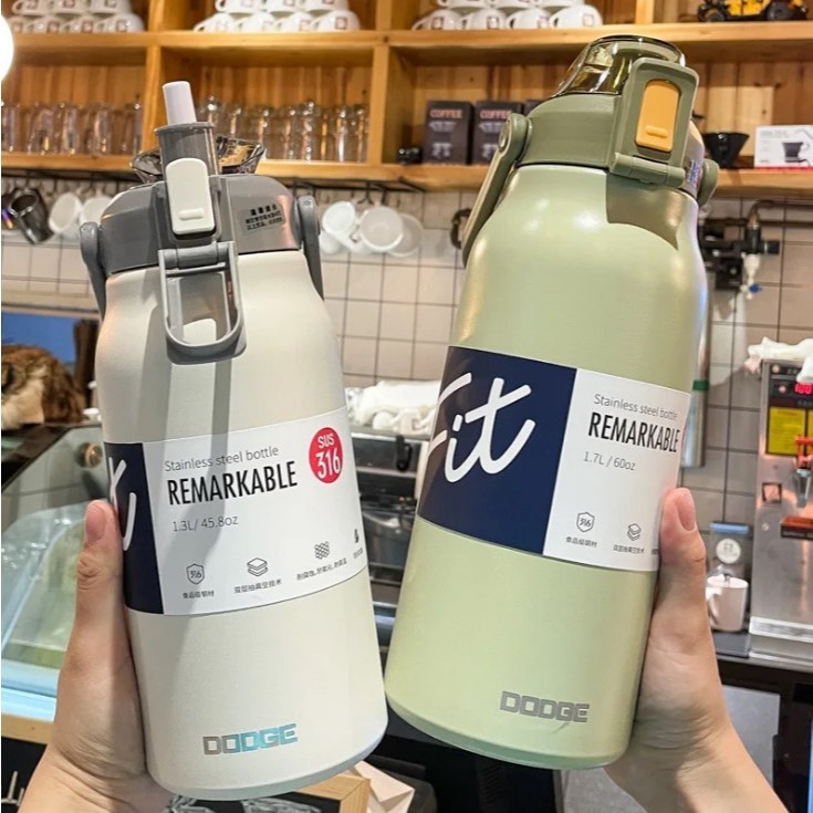 Garrafa Térmica Tumbler De Viagem Vacuum Inox 1,3L-1,7L Litros Água Café com Alça Palha Gym Camping