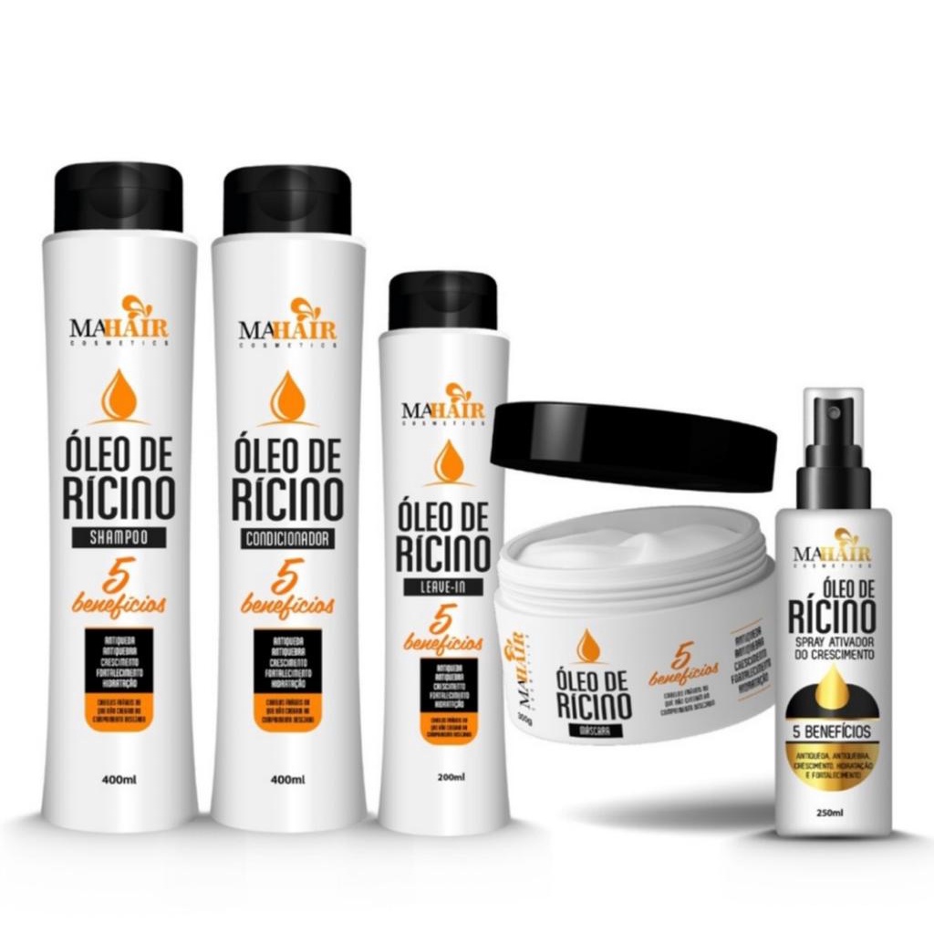 Kit Capilar Óleo de Rícino - 6 Produtos (Shampoo, Condicionador, Máscara, leave-in, Finalizador e Reparador)