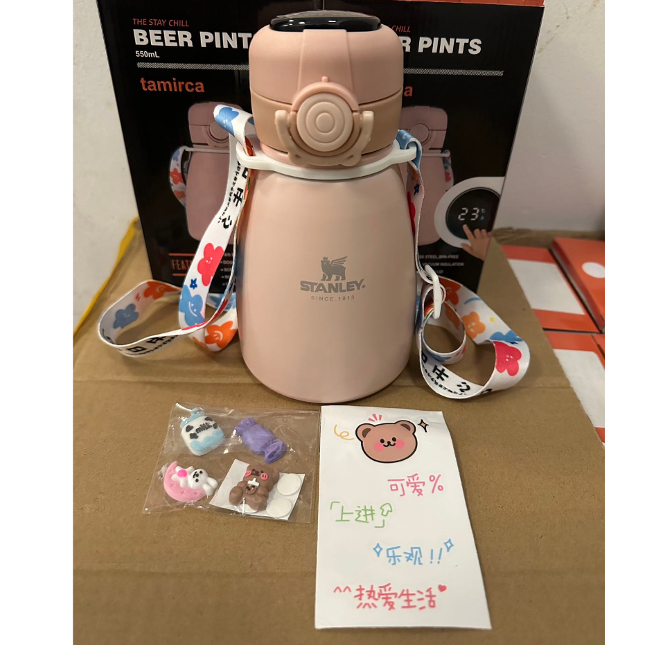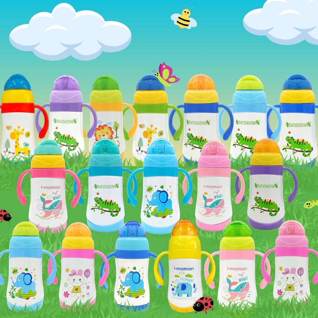 Garrafa Térmica Infantil Vaccum Aço Inox 304 Portátil com Alça Garrafinha Para Bebidas Quente ou Frio Garrafa de Água Infantil 280ML
