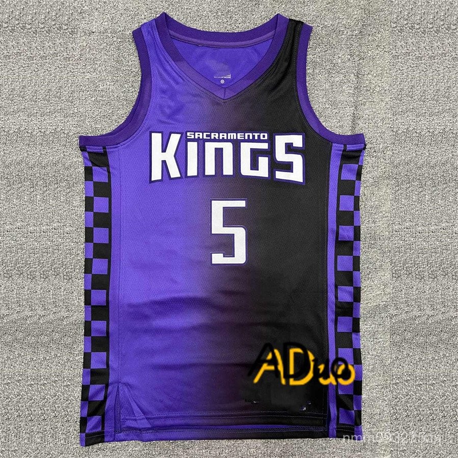 2023-24 Camisa Sacramento Kings 5 De'Aaron Fox Preto Púrpura Camiseta 2023NBA De Basquetebol Jersey