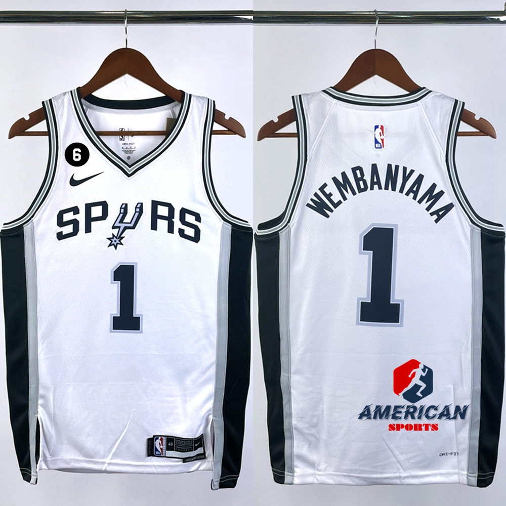 Basquetebol Masculino Camisa San Antonio Spurs 1 Victor Wembanyama 2023NBA Nova Temporada Camiseta Branca Jersey