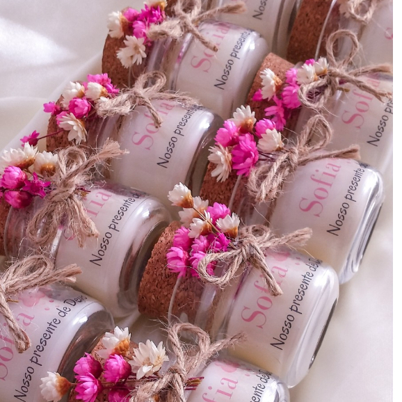 Mini Vela Aromática com flores sempre viva para Lembrancinha Casamento, Maternidade, Batizado, Aniversário, Bodas, Debutantes.