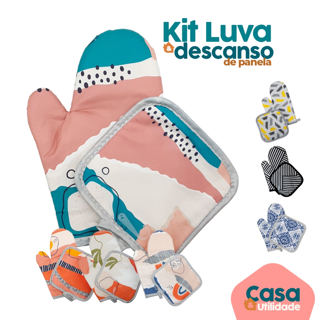 Luva Térmica + Descanso Suporte De Panela Kit De Cozinha Pegador Térmico Forno
