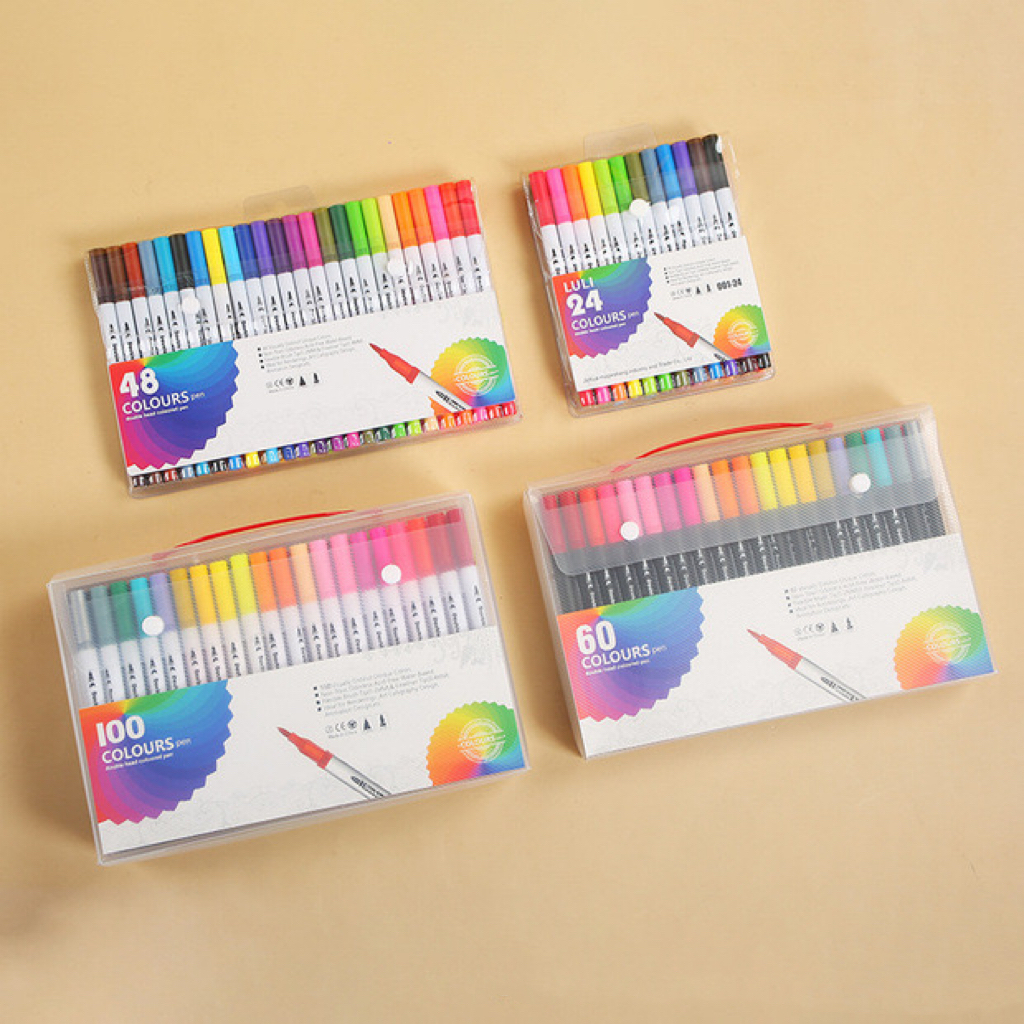Kit 12/24/36/48/60 Cores Caneta 2 em 1 Brush Lettering e Ponta Fina Dual Pen Canetinha Colorir Desenho