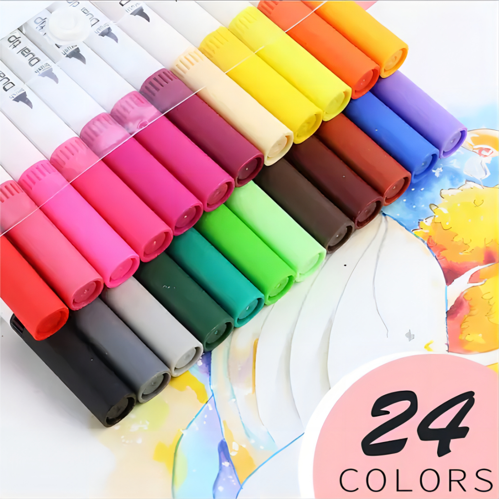 Kit 24 Caneta 2 em 1 Brush Lettering e Ponta Fina Dual Pen Canetinha Colorir Desenho