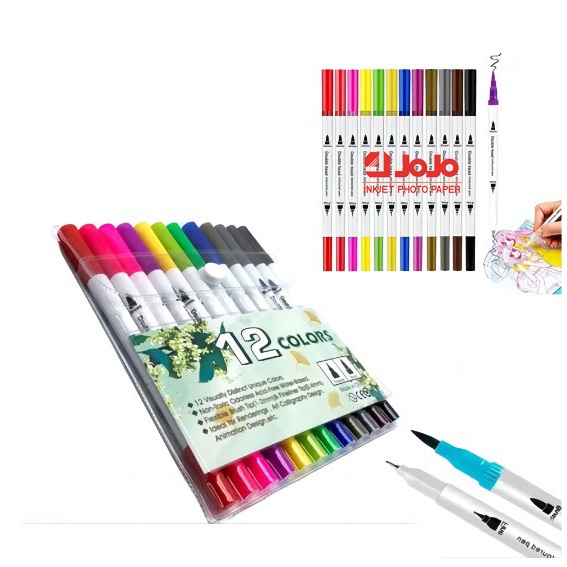 Kit 12 Caneta 2 em 1 Brush Lettering e Ponta Fina Dual Pen Canetinha Colorir Desenho - Armarinhos BS