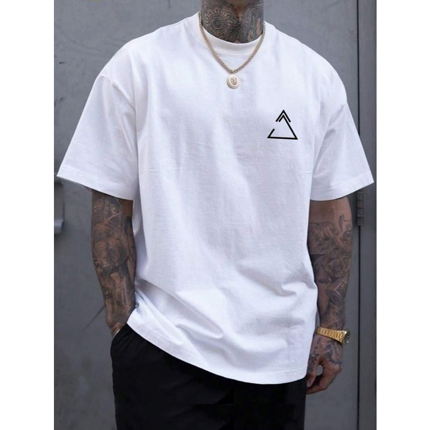 Camiseta 3 Angulos Estampa Bordado Grafico Frente Simbolo Enigma Aliança Desenho Geometrico Triplice Minimalista Manga Curta Ombro Caido Oversized