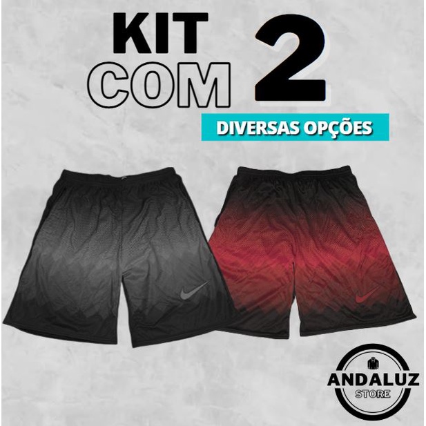 Kit Com 2 Bermudas Shorts Dry Fit Futebol Academia Colorido Com Bolso