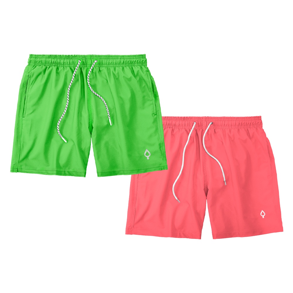 Kit 2 Peças Shorts de Tactel com Elastano Masculino Basico Liso Casual Moda Praia Treino e Academia Bermuda