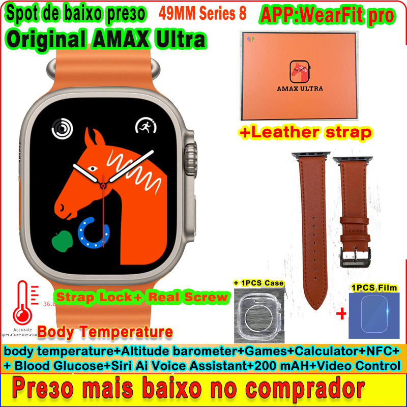 Relógio Original AMAX Ultra Inteligente Siri Série 49MM 8 Altitude NFC Bluetooth Chamada De Glicose Sanguínea De Temperatura Corporal
