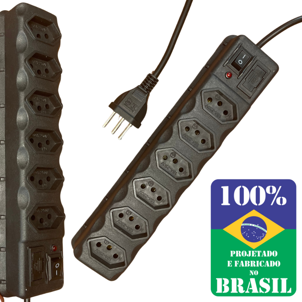 Filtro de Linha Régua de Tomadas 3, 4, 5 e 6 Tomadas Elétricas Tripolas 10 Amperes com Fusível e Interruptor 110V e 220V Melhor Qualidade